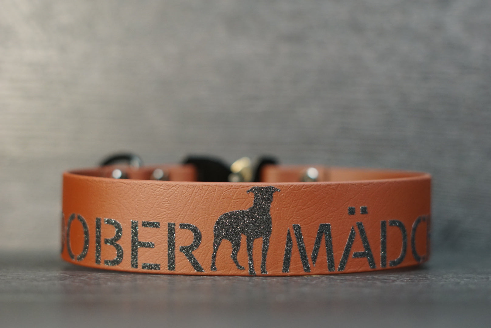 - Das Biothane-Halsband ist 38 mm breit. Es eignet sich gut für mittelgroße und große Hunde
