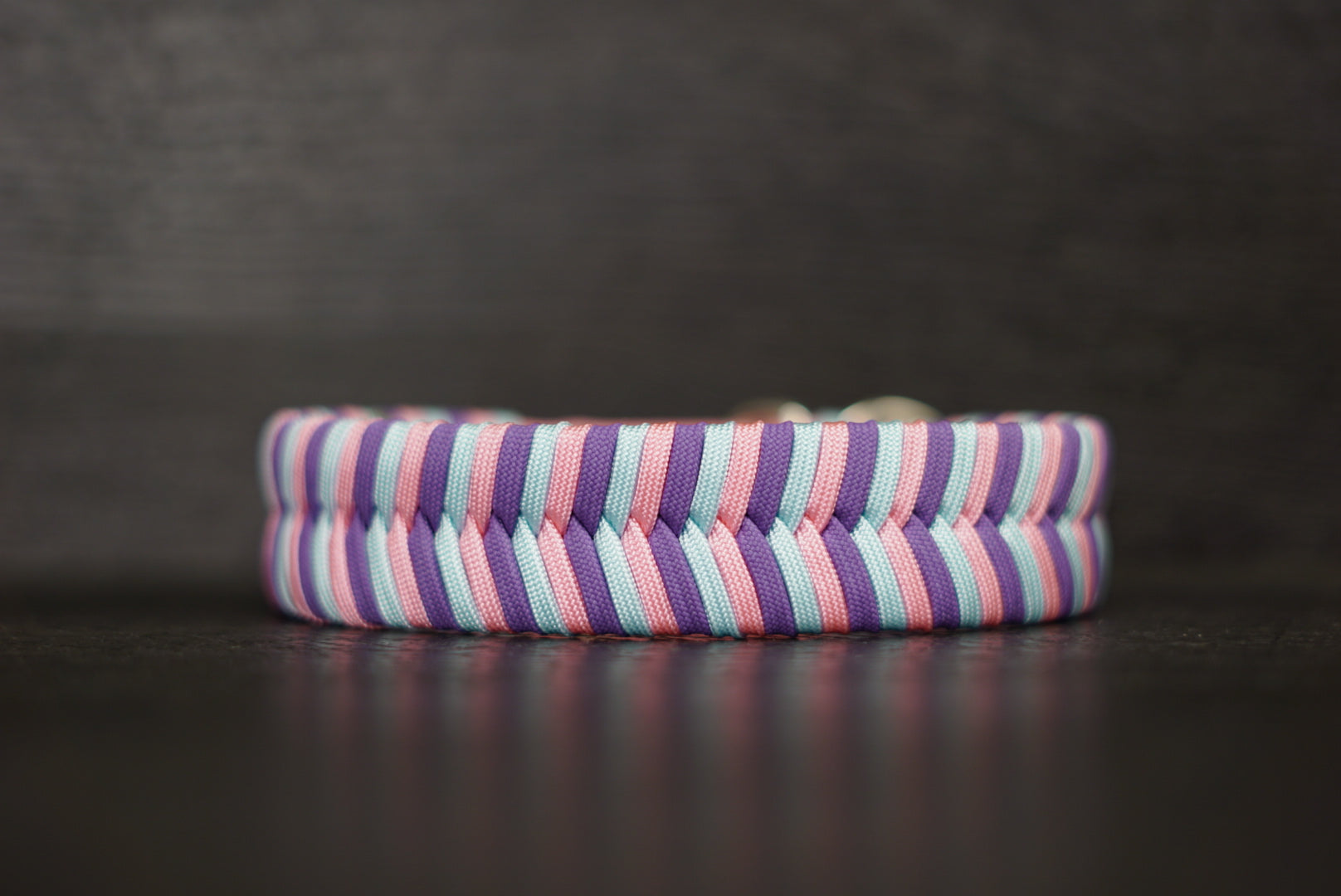 Das Biothane Halsband mit Paracord umflochten ist ca. 2,7 cm breit. Und eignet sich gut für kleine bis große Hunde.