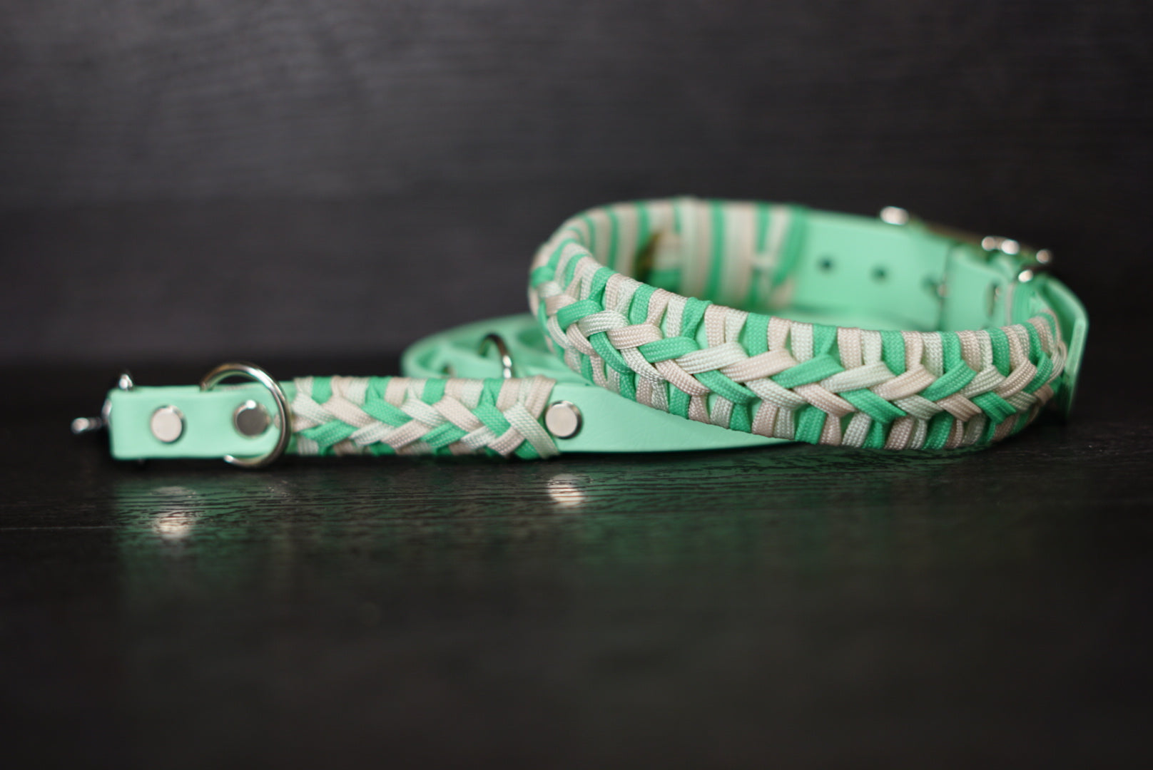 - Zusätzlich könnt Ihr direkt die passende Leine dazu wählen. Die Biothane Leine ist 16 mm breit.