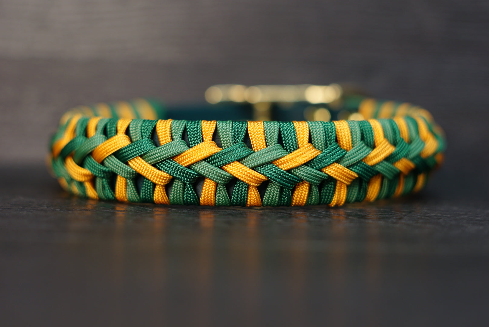 Das Biothane Halsband mit Paracord umflochten ist ca. 2,7 cm breit. Und eignet sich gut für kleine bis große Hunde.