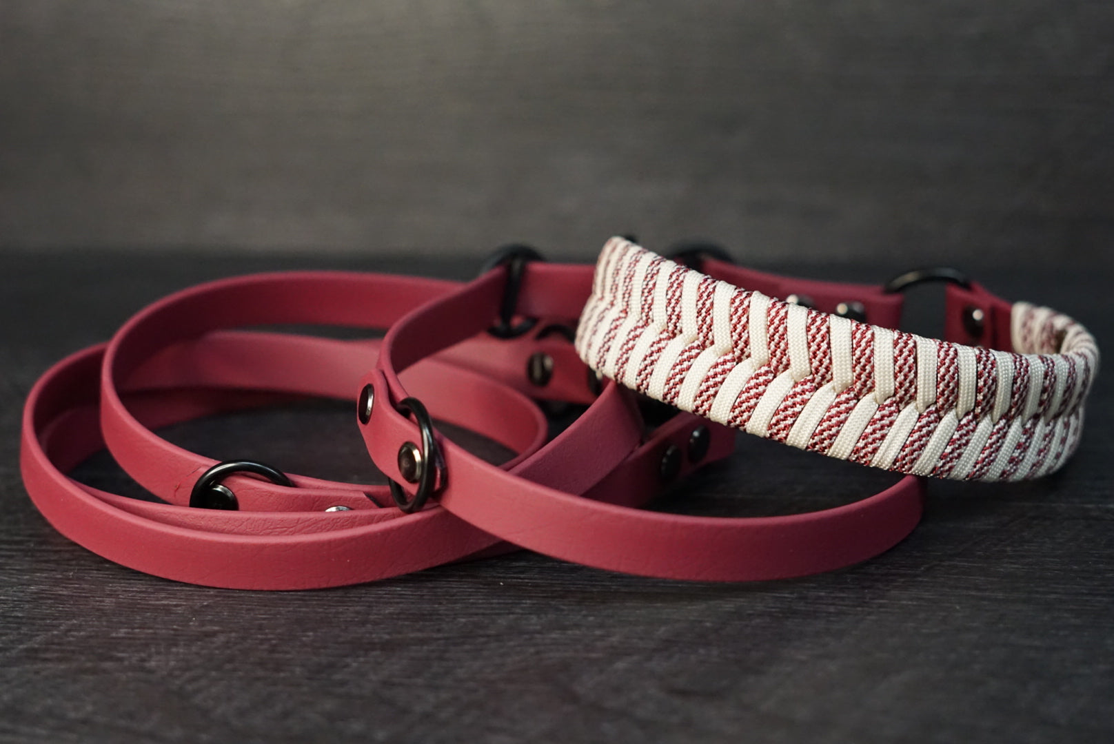 - Bitte sucht euch eine Biothane Farbe aus der Biothane Farbauswahl aus und bis zu 3 Paracord Farben aus der Paracord Farbauswahl.